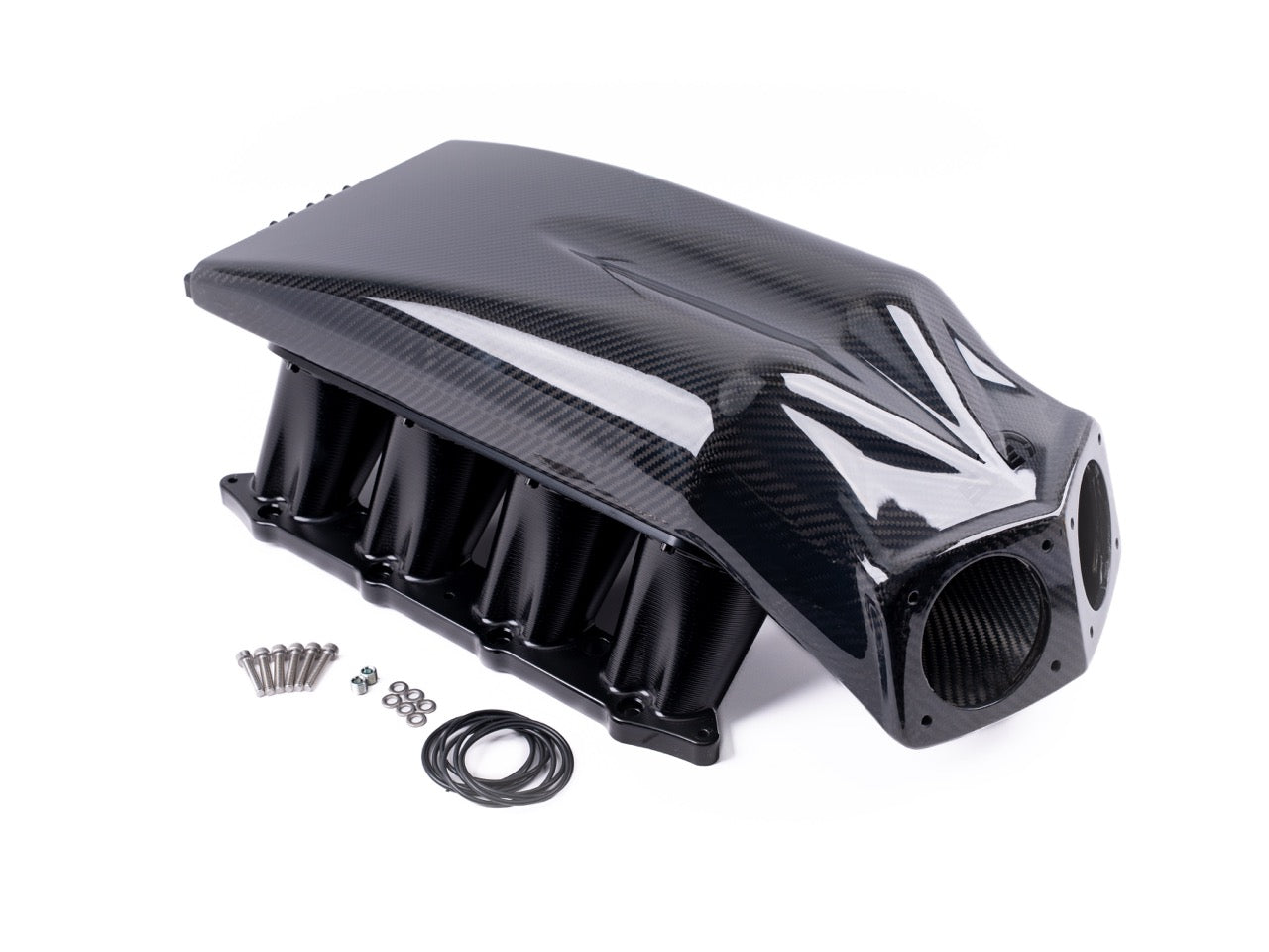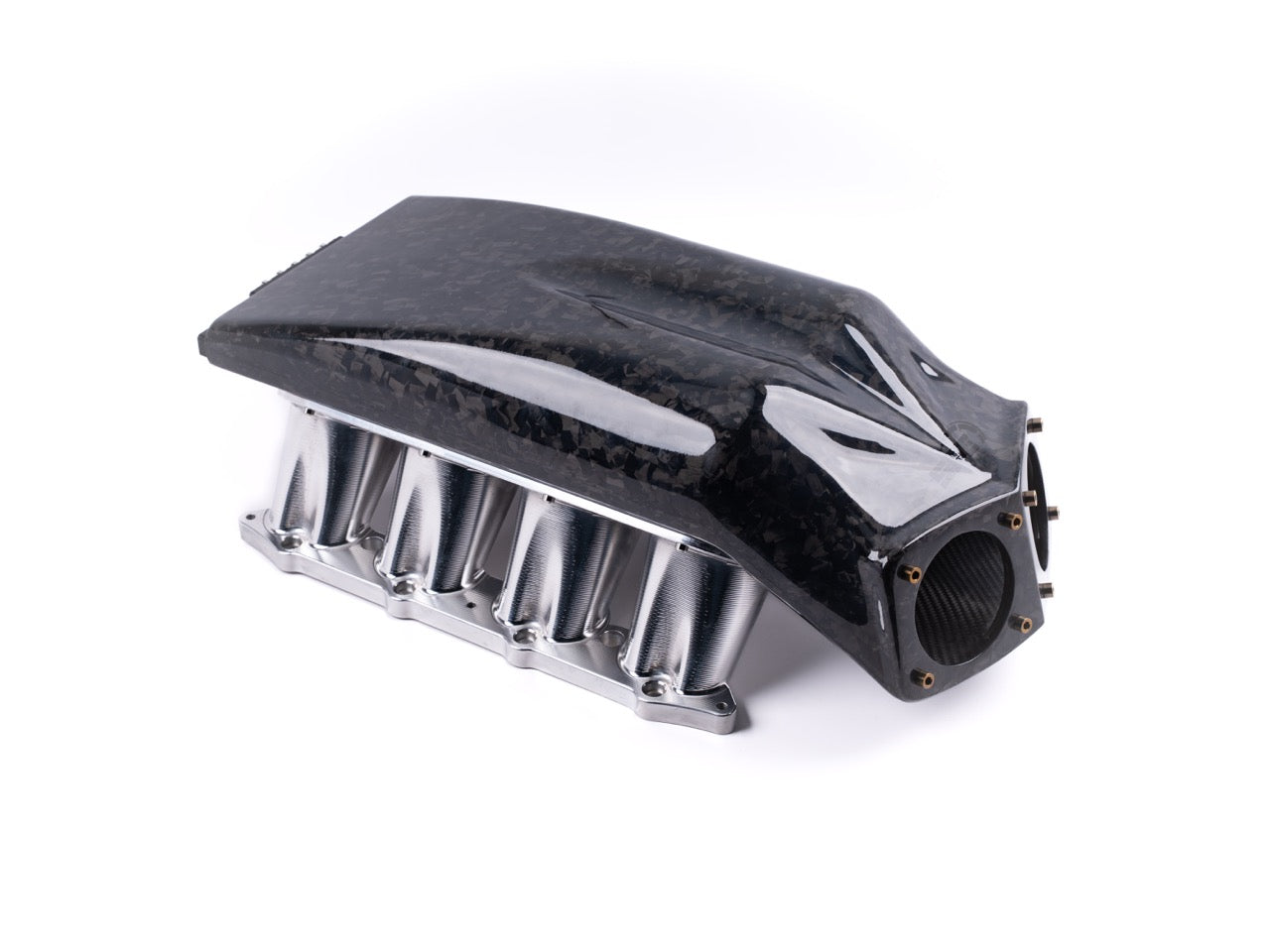 The carbon fiber mono-plenum keeps weight down while maintaining strength where it matters. Paired with our 5-axis CNC-machined billet runners, this setup is built to handle high boost without becoming a restriction or a failure point. Tested at 135 PSI This intake is capable of extremely high boost pressures.